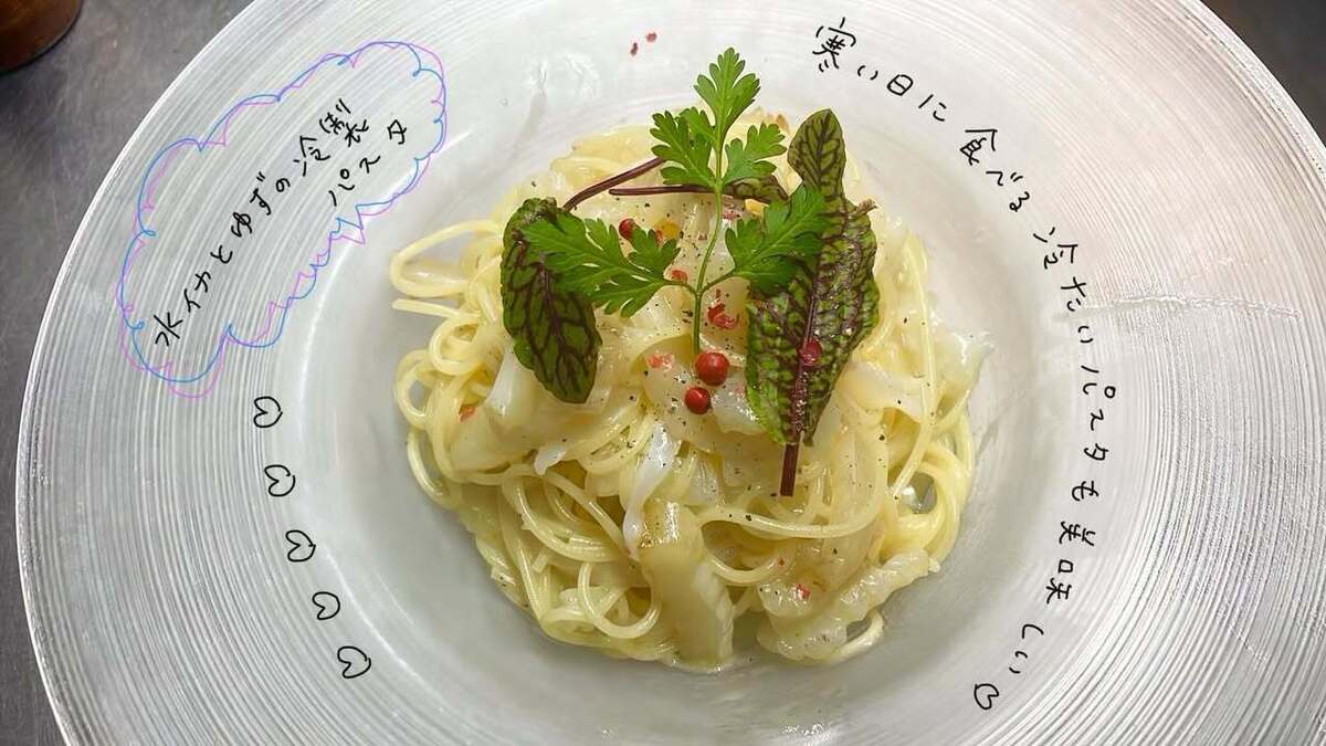 ”水イカと柚子の冷製パスタ”を提供しています🥹